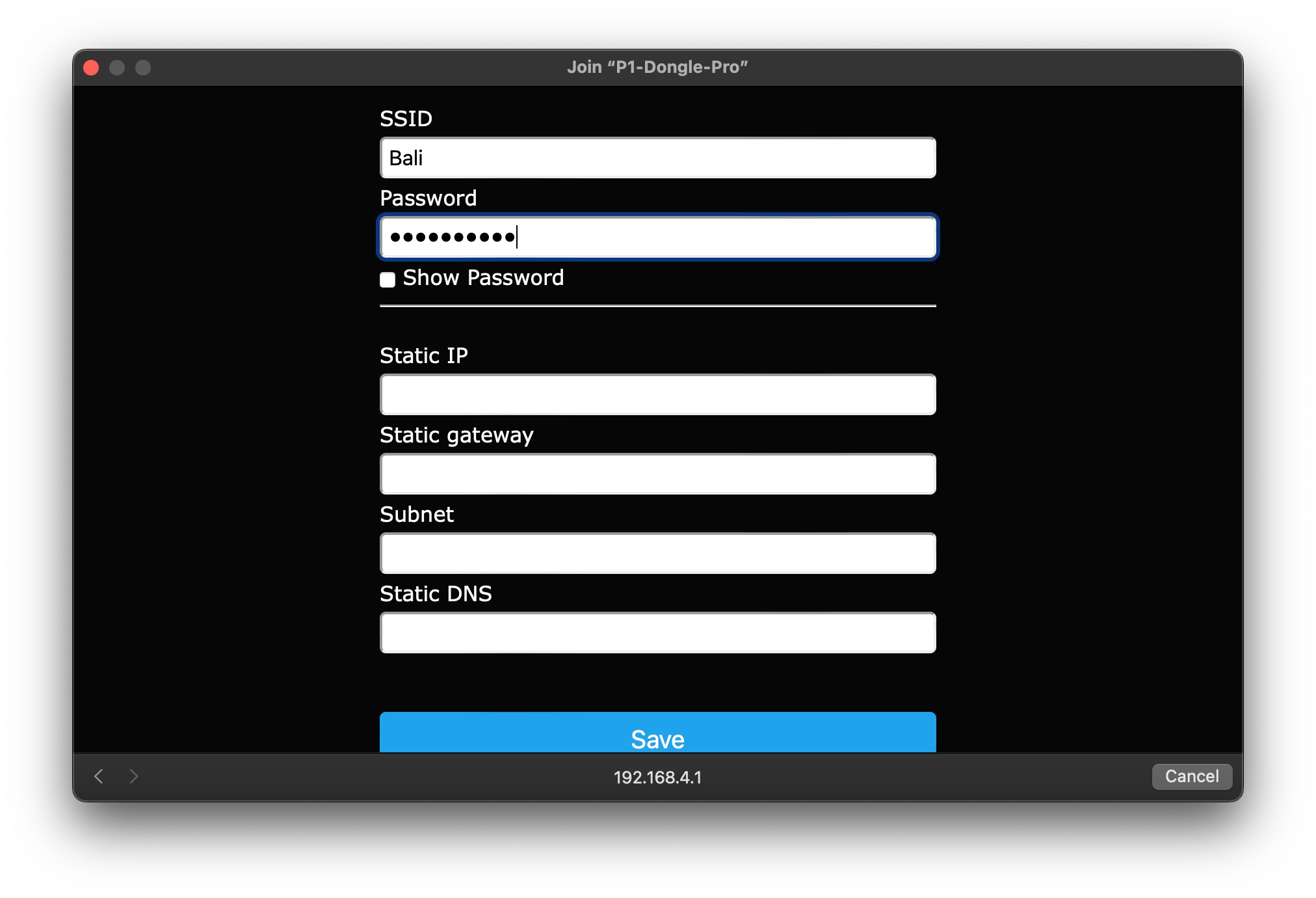 Indien de ethernet kabel niet gekoppeld is zal de dongle na 5 seconden de wifi hotspot opzetten. Dit is aan de dongle te zien doordat de blauwe led snel gaat knipperen. U kunt de instructie hieronder volgen.