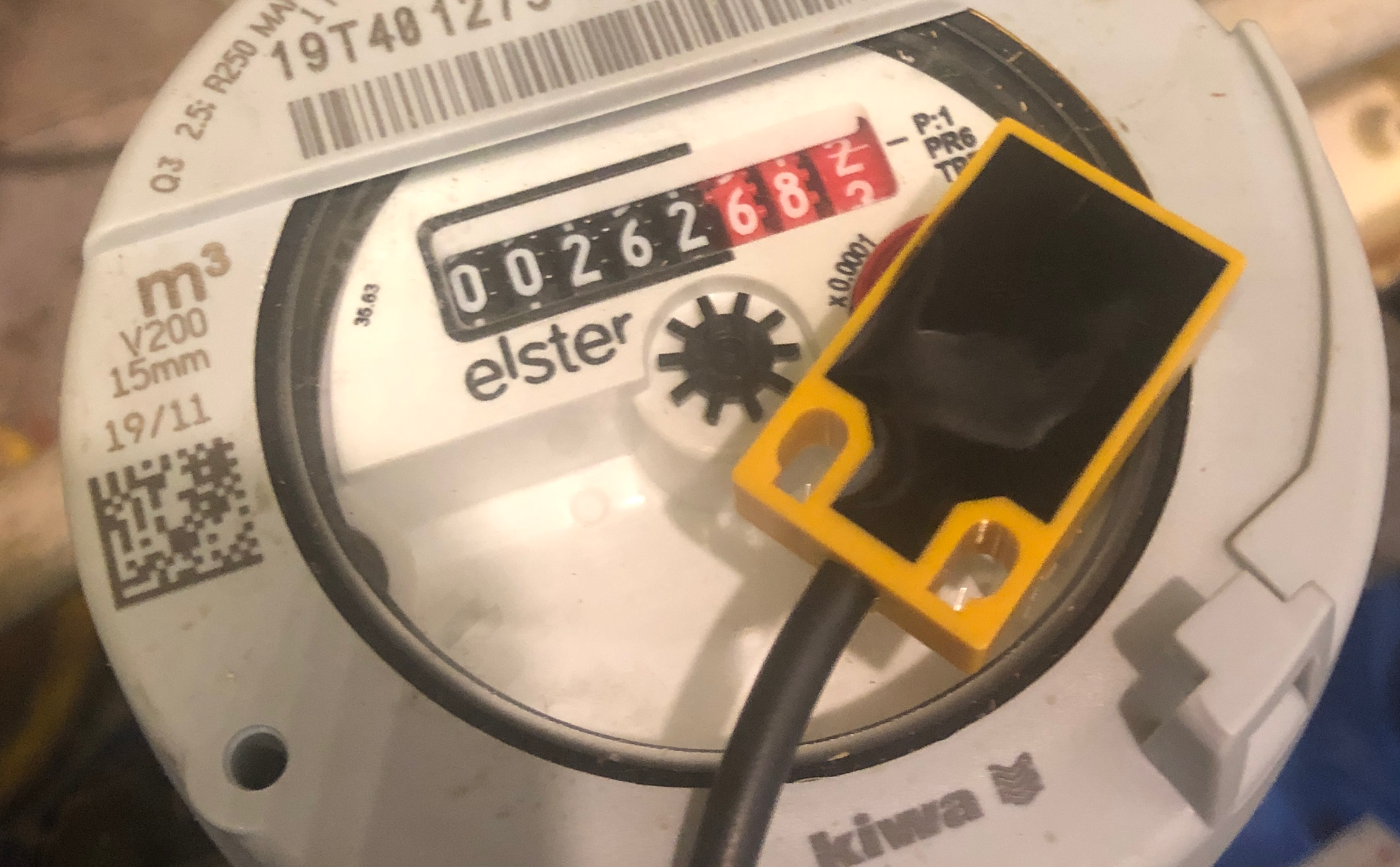 Het waterverbruik wordt gemeten door de omwentelingen te tellen van het liter wieltje in de watermeter. Dit wieltje moet een metalen vlakje hebben om te worden gedetecteerd.